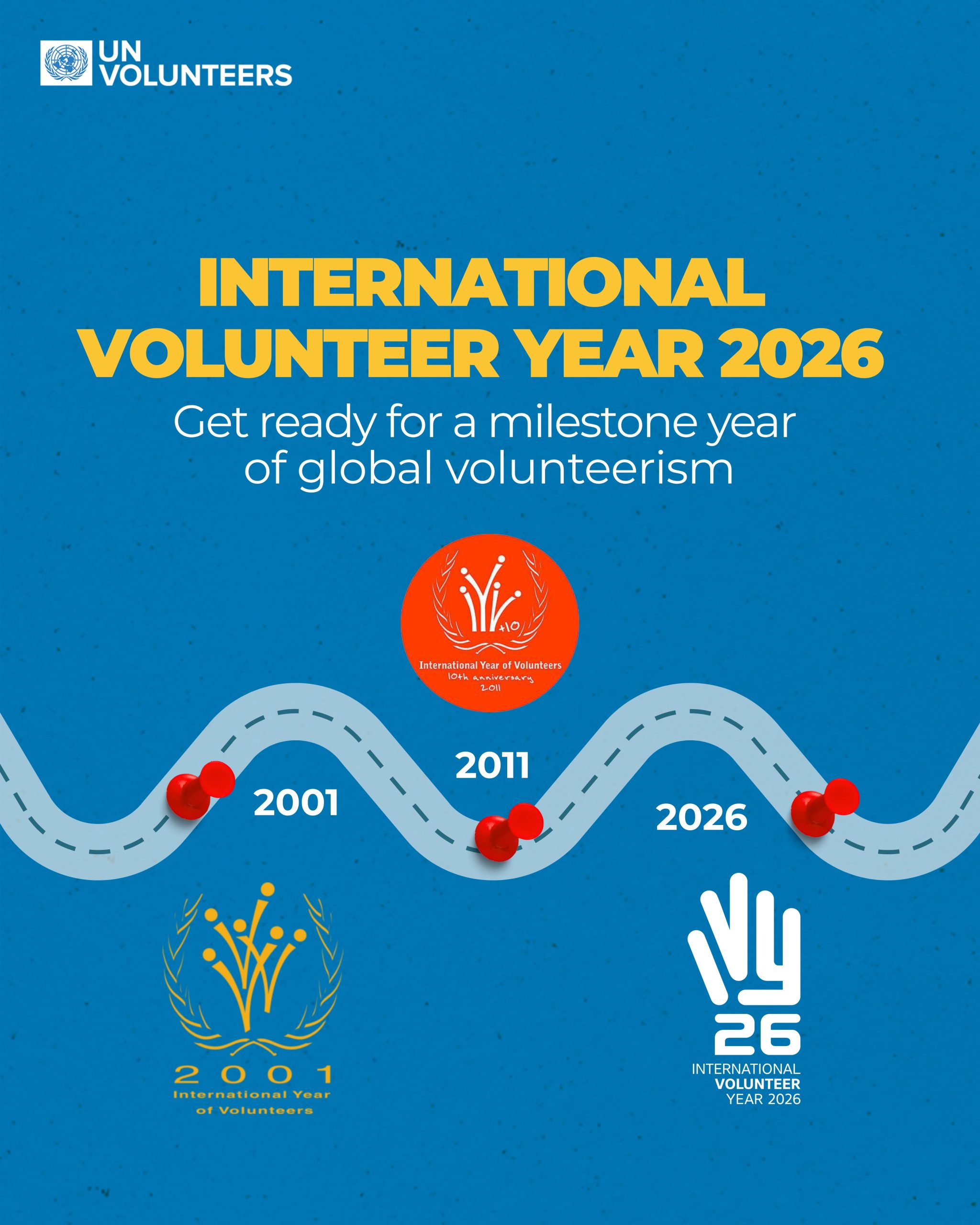 Through Resolution 78/127, the United Nations General Assembly has proclaimed 2026 as the International Year of Volunteers for Sustainable Development (IVY), thereby promoting and recognizing volunteerism as a significant force for sustainable development. The General Assembly calls on Member States, United Nations system organizations, and other relevant stakeholders, including civil society, the private sector and academia, to observe the International Year at national and regional levels.