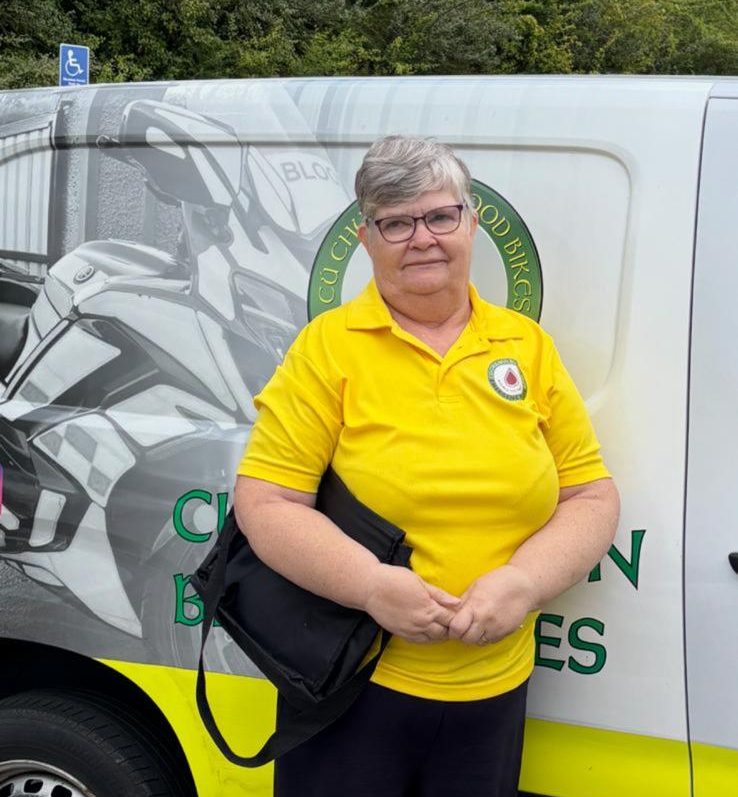 Linda can be found all over Cu Chulainn Blood Bikes, as Secretary, Phone Controller, Driver, Fundraiser and activist for the past six years. She has been the constant thread running through every call, delivery, and decision. Whether it’s blood samples, patient records, breast milk, or emergency medical supplies, her coordination ensures that everything arrives where it’s needed, when it’s needed. This reliability translates directly into better outcomes for patients, smoother operations for hospital staff, and peace of mind for families. She is often the first point of contact for a family in crisis and has the savvy and the heart to be the liaison with hospitals to ease their burden. She also promotes Cu Chulainn Blood Bikes to bring awareness of their services to a greater public. She led the submission process that resulted in the organisation being named the National Lottery Good Cause of the Year in 2022.